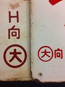 【しおじ○大向/ うずしお○大向】 ホーロー白板赤浮文字 しおじ パーラーカー入 新大阪〜広島・下関 うずしお 新大阪〜宇野 使用によるホーロー剥、 錆、若干反有 状態使用痕共に極上 【宇野⇔新大阪 ○大向H/宇野⇔ 大阪○大向H】 ホーロー白板赤浮 文字 特急うずしお 2号等で使用 使用による塗装剥、 錆、反有 状態使用痕共に極上 |