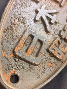 【中】 中津川機関区 鉄製塗装板返し取っ手 使用による傷錆有 下部枠内使用による 磨耗、仕業札として 使用による数字痕有 状態使用痕共に極上 |