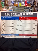 【京津線 浜大津方面 発車時刻表】 プラ板 69.7×99.6×0.2p 5時〜24時 平日/休日 汚有/状態優 |