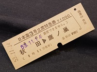 【立席特急券】 「日本海3号立席特急券」 ¥1000 53年11月14日 秋田⇒鷹ノ巣 (8時51分発車) 秋田駅発行 状態 優 |