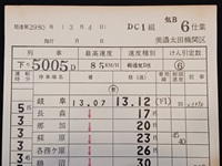【運転スタフ】 「特急ひだ5号」 美濃大田機関区 汽B6仕業 5005D列車:岐阜→高山 スタフ1枚 作成・照合印有 状態 優/経年焼有 |