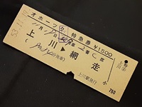 【特急券】 「オホーツク」 ¥1500 53年11月19日 7号車2番C席 上川⇒網走温泉 (9時34分発車) 上川駅発行 状態 優 |
