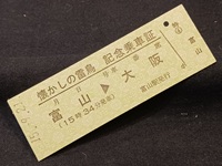 | 【記念乗車証】 「懐かしの雷鳥」 平成15年9月21日 月日号車席番空欄 富山→大阪 (15時34分発車) 富山駅発行 485系ボンネット特急 さよなら運転 状態 優 |