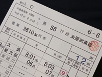 【運転スタフ】 「東海道線電車」 米原列車区 第56行路 平成15年2月15日 電第3610M列車:大阪→草津 電第912M列車:草津→米原 スタフ1枚/押印有 ケース無/状態 優 |