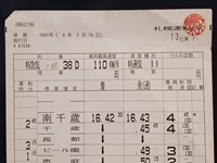【運転スタフ】 「千歳線特急気動車」 札幌運転所 13仕業7- 平成8年2月15日 特急気 十勝 38D 南千歳→札幌 スタフ1枚/押印有 ケース無/状態 優 |