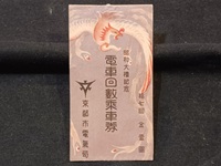 【回数券表紙】 「昭和大礼記念」 京都市交 2折/折畳時8×4.5cm 電車回数乗車券 京都市電気局 五十二回 金三円 状態 優 |