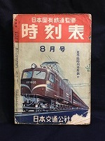 「日本国有鉄道監修 時刻表」 昭和29年8月号 日本交通公社 下記臨時列車付録付 鉄道債券広告付(破有) B6版/336P 表紙、裏表紙共に破有 経年焼・シミ有 状態並 |