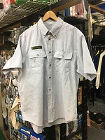 「JR東日本旧接客」 色 ライトグレー サイズ/L 半袖 肩幅48/丈82/胸囲100㎝ 両胸にポケット付 ボタンダウン 両袖、右胸に エンブレム付 未使用 |