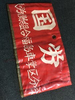「国労」 国鉄労働組合 福島支部 朱色布製/ 白色印刷文字仕上 ビニール製カバー付 サイズ/10/18㎝ 中央部上部に固定用穴 1つ有 状態優 |