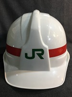 「JR東日本」 色 白+ 赤色ストライブ スターライト工業(株) 1993年12月製造 フリーサイズ/ あご紐付 後部に列車見張り員 文字記載有 状態優 |