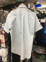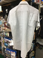 「東京都交通局 盛夏シャツ」 色 ライトグレー+ 白色ストライブ サイズ/N44 肩幅52/丈84/胸囲120㎝ 両胸にポケット付 左胸にロゴ有 第5ボタンに割れ有 状態優 |