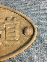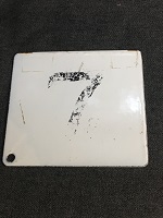 「車内用号車札 5号車/7?」 白色ホーロー板/ 黒色浮文字仕上 裏面に7号車? 消した痕有 下部に固定用穴1つあり サイズ/9.5/9.5㎝ 使用による傷、 塗料剥げ、錆、 テープ痕等有 状態優 |