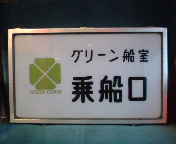 乗船口入口に掲示されていた、懐かしの表示板です。画像ではお見せ出来ませんが使用痕抜群できっと気に入ってもらえるはずです。アクリル板裏彫の他 矢印部は貼り板です 当時とても行けるような所でなかった憧れのグリーン船室です お部屋のインテリアに最高ですヨ サイズ15CmX61CmX0.5Cm |