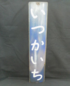 山陽本線 「いつかいち」 五日市駅 丸柱ホーロー白彫文字 75×15cm ホーロー若干欠・錆有 状態良 |